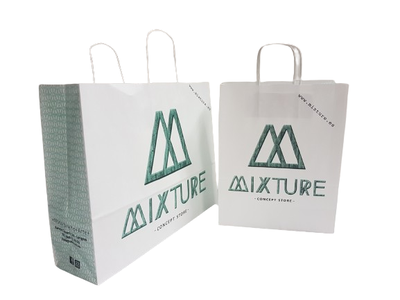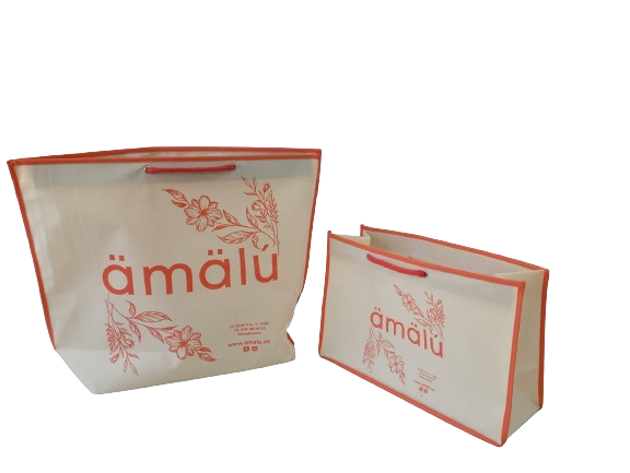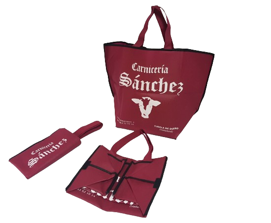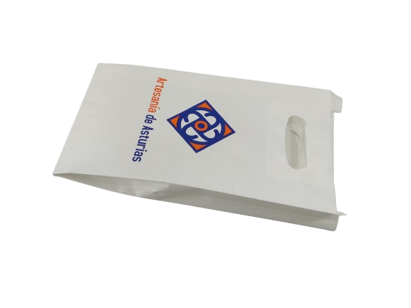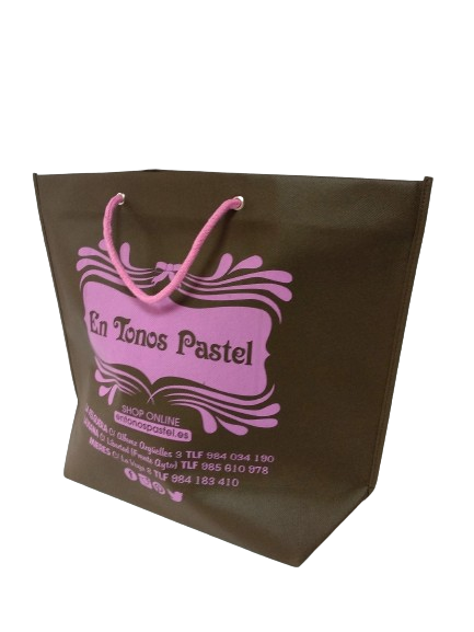 Existen muchos modelos de bolsas. Partiendo del material que el cliente haya elegido (papel, plástico, non woven…) imprimimos y confeccionamos la bolsa.